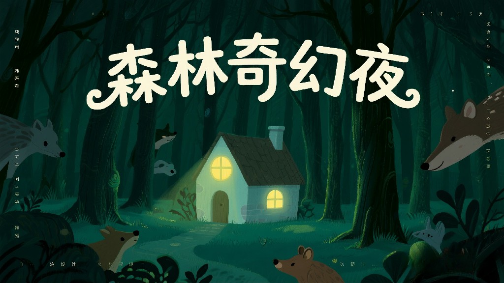2025.11.25 上新 漆黑的森林里,树木的影子重重叠叠,唯有一间小屋透着暖黄灯光,窗户亮得像星星,深色的树林与亮色的小屋相互映衬,满是奇妙的夜晚氛围。