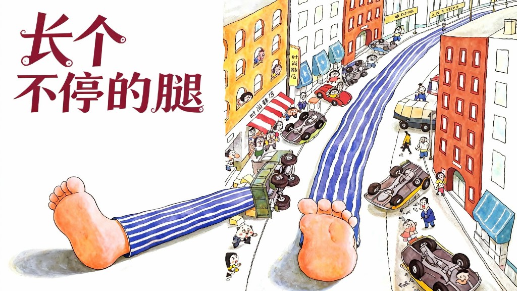 2025.12.15 上新 主人公的大长腿长到伸进城市里,大脚丫子差点踢到钟楼的尖顶,街上的汽车绕着脚丫子打转,这场面既热闹又充满想象力。