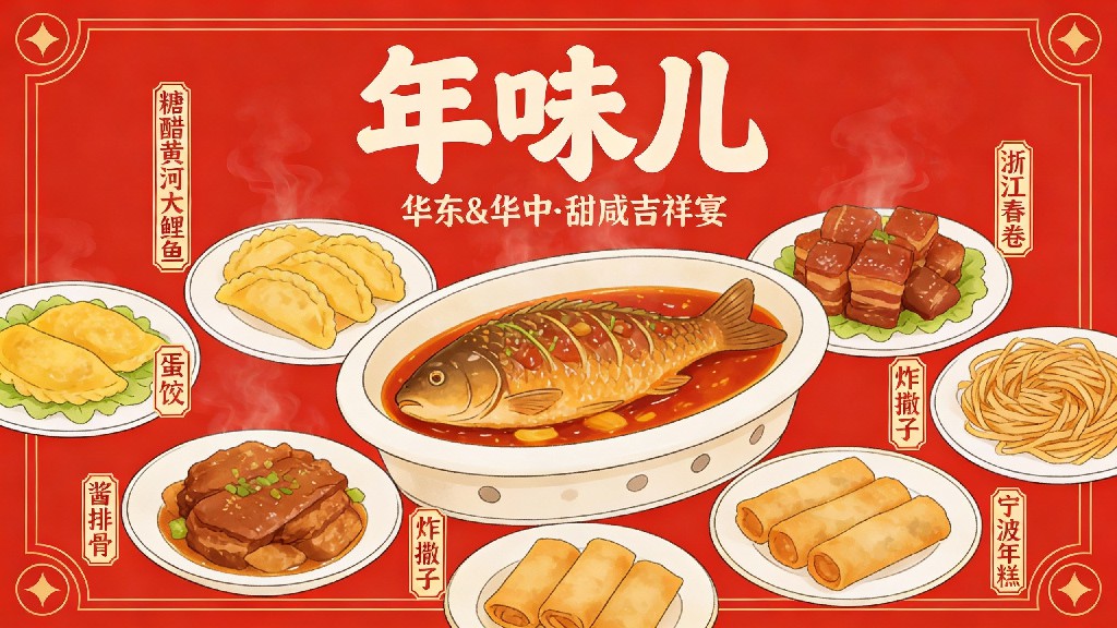 2026.1.13 上新 华东华中的年味儿,是桂花糖藕的甜、酱鸭的咸,是八宝饭的糯、热干面的香,甜咸搭配的宴席,盛满了地道的年节烟火气。